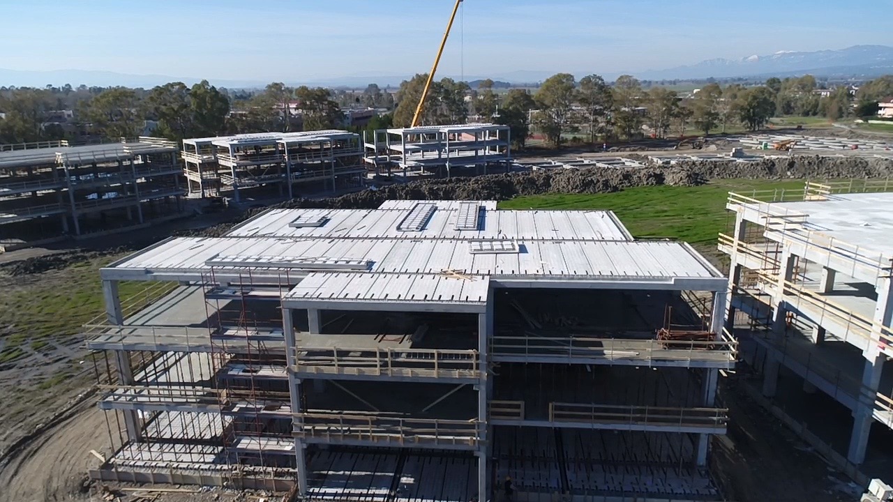 Generale Prefabbricati SpA è stata incaricata di fornire in opera 30.225 mq di strutture prefabbricate in c.a.v. e c.a.p. (travi, pilastri e Spiroll) e 20.000 mq di solai alveolari Spiroll. L’attività di posa in opera è stata avviata nel gennaio 2018 e il termine dell’intervento è previsto per giugno di quest’anno. Lo stato di avanzamento dei lavori al 30 aprile era infatti del 70%.